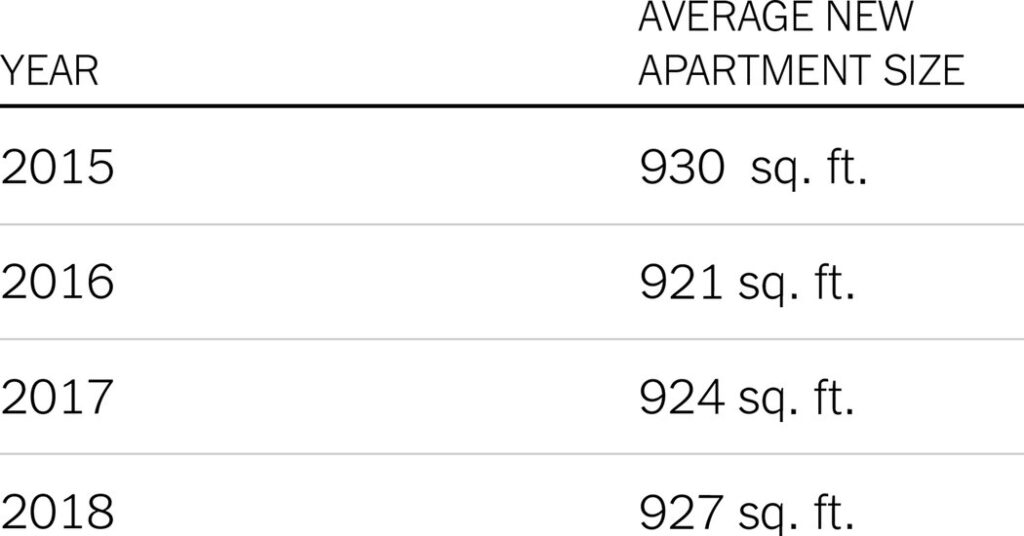 Despite the descending trend of a decade in the size of the new apartment, there is a leg a recent increase, with rentals that earn 17 square feet in the last two years. Even the cities experienced by some of the worst housing shortages have seen notable profits.